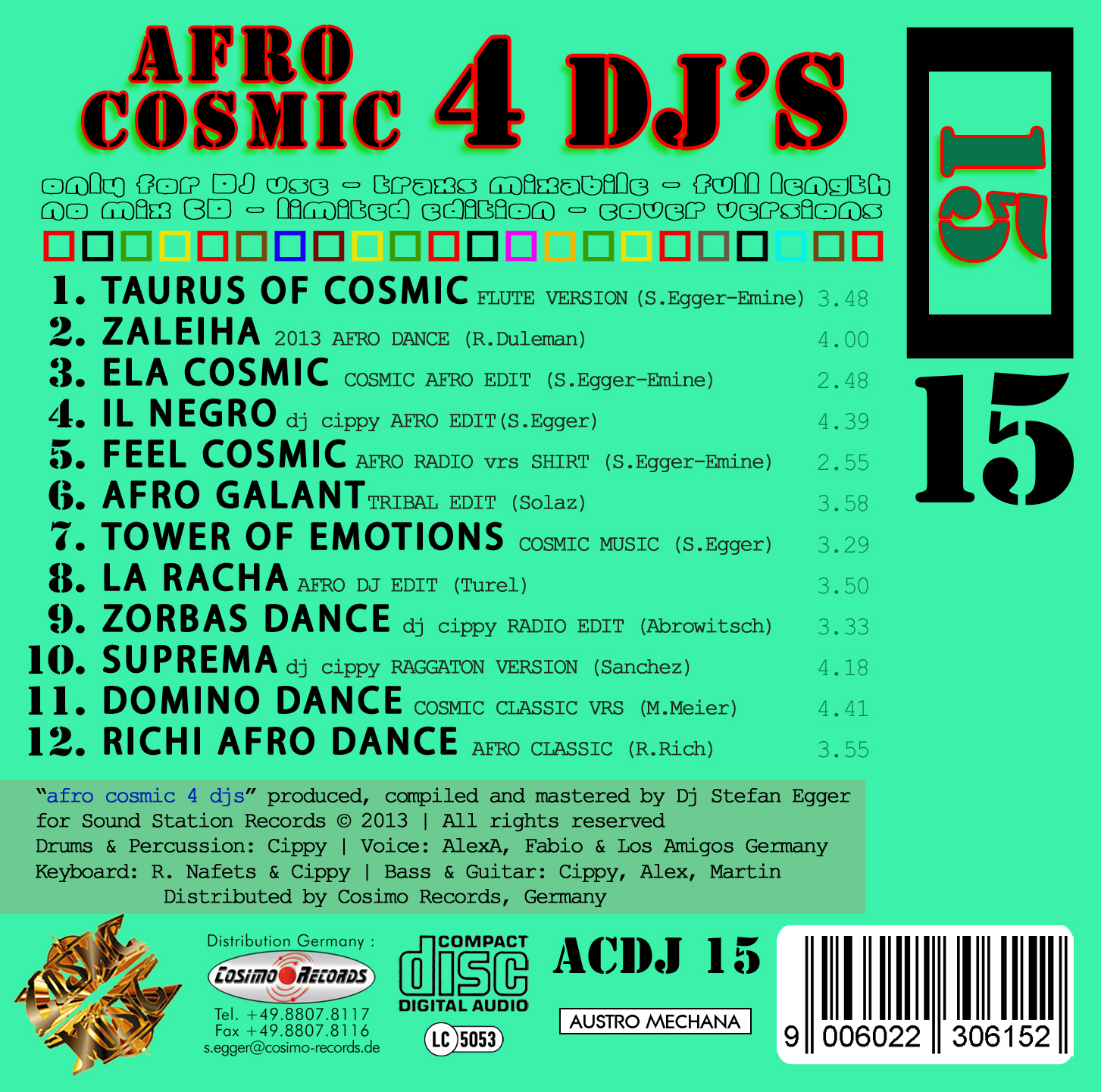 afro cosmic 4 DJs | vol. 15 €18,90 Includes 19% MwSt. plus shipping - afro cosmic 4 DJs | vol. 15 quantity + Add to cart Categories: Afro Cosmic 4 DJs, NO-MIX CD Related products afro cosmic 4 DJs | vol. 6€18,90 Includes 19% MwSt. plus shippingAdd to cart Discover Cosmic : Dj Stefan Egger€18,90 Includes 19% MwSt. plus shippingAdd to cart AP 00109 Cosmic Esmeralda MCD€18,90 Includes 19% MwSt. plus shippingAdd to cart Afrohymn Dj Ben feat. Emine MCD€15,90 Includes 19% MwSt. plus shippingAdd to cart