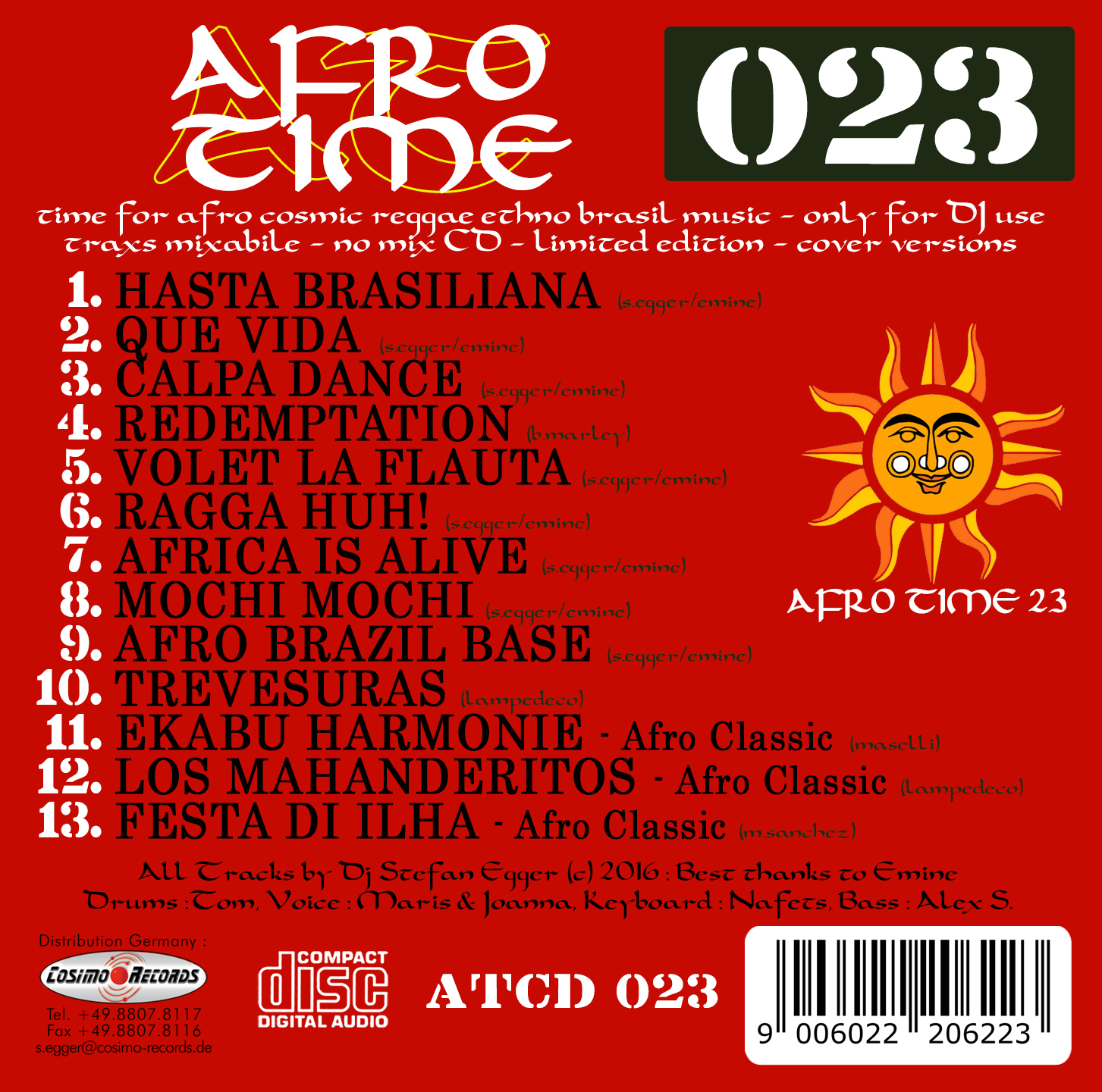 Afro Time CD 023 €18,90 Includes 19% MwSt. plus shipping - Afro Time CD 023 quantity + Add to cart Categories: Afro Time, NO-MIX CD Related products Afrohymn Dj Ben feat. Emine MCD€15,90 Includes 19% MwSt. plus shippingAdd to cart afro cosmic 4 DJs | vol. 16€18,90 Includes 19% MwSt. plus shippingAdd to cart afro cosmic 4 DJs | vol. 2€18,90 Includes 19% MwSt. plus shippingAdd to cart Discover Cosmic 2008 : Dj Stefan Egger€18,90 Includes 19% MwSt. plus shippingAdd to cart