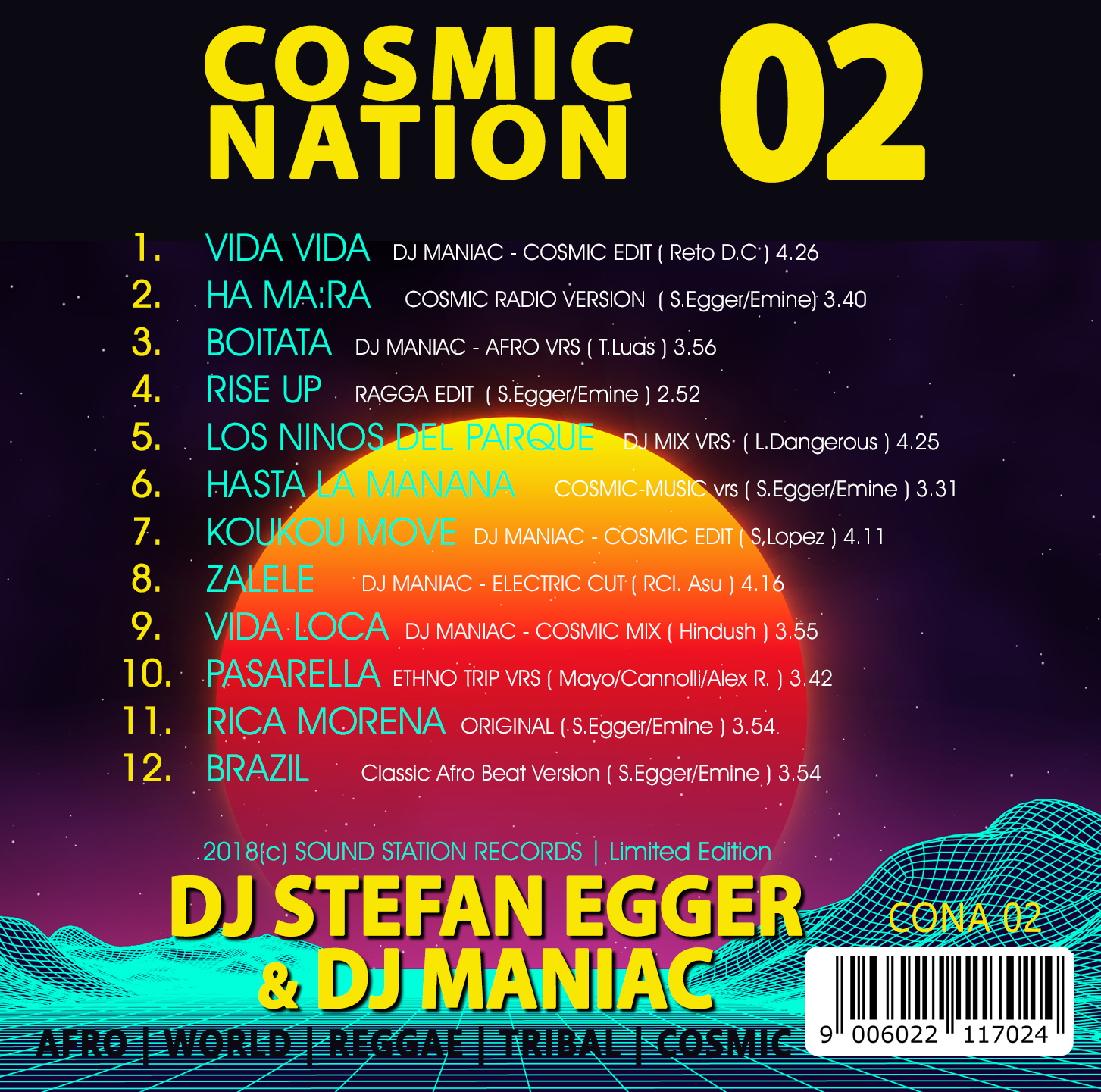 COSMIC NATION 02 | Stefan Egger + Maniac €18,90 Includes 19% MwSt. plus shipping - COSMIC NATION 02 | Stefan Egger + Maniac quantity + Add to cart Categories: DJ Stefan Egger, NO-MIX CD Related products Discover Cosmic 2008 : Dj Stefan Egger€18,90 Includes 19% MwSt. plus shippingAdd to cart afro cosmic 4 DJs | vol. 2€18,90 Includes 19% MwSt. plus shippingAdd to cart Cosmic Evolution : Dj Stefan Egger€18,90 Includes 19% MwSt. plus shippingAdd to cart afro cosmic 4 DJs | vol. 3€18,90 Includes 19% MwSt. plus shippingAdd to cart