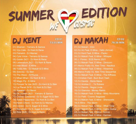 Summer Edition | Kent & Makah | 2-Mix CD €29,90 Includes 19% MwSt. plus shipping We love Cosmic & Afro 2er Mix CD – 2 CD Box DJ MAKAH & DJ KENT Out of stock Categories: MIX CD, New Mix CDs, Other DJs Description Description Summer Edition 2 CD Mix Box Related products Dj Stefan Egger | Cosmic Deluxe€18,90 Includes 19% MwSt. plus shippingAdd to cart EST 01 Dj Stefan Egger CD 01€18,90 Includes 19% MwSt. plus shippingAdd to cart EST 18 Afromic | Dj Stefan Egger CD€18,90 Includes 19% MwSt. plus shippingAdd to cart EST 04 Dj Stefan Egger CD€18,90 Includes 19% MwSt. plus shippingAdd to cart